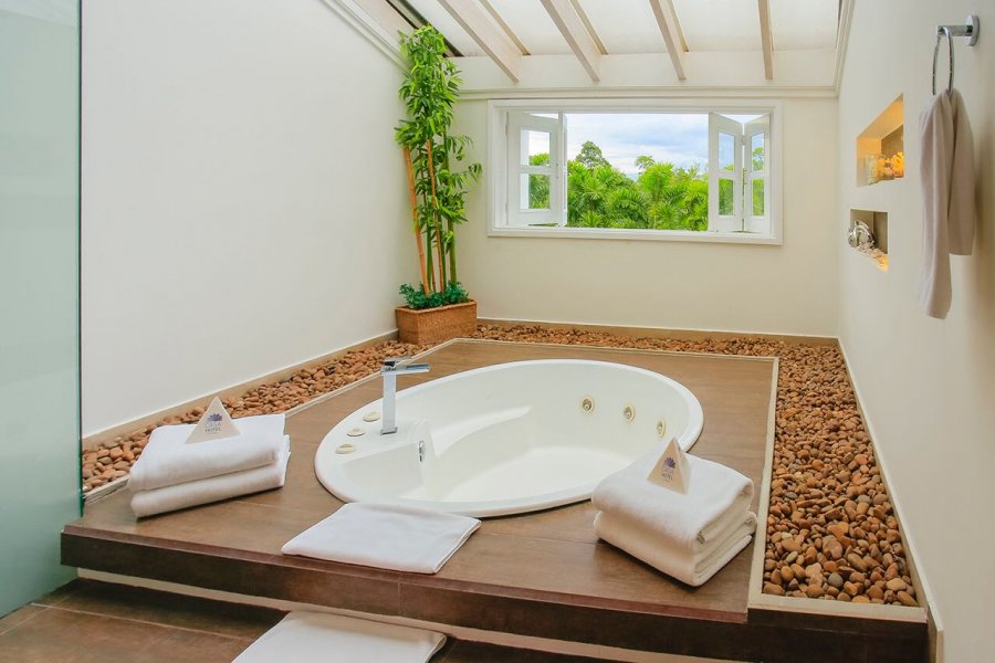 Nuestra espectacular suite Triángulo cuenta con un área total de 76 m2 (30 m2 de habitación principal, 12 m2 de habitación auxiliar, 28 m2 de baño y 8 m2 de balcón privado). Los grandes ventanales ubicados en la habitación y en el baño ofrecen una agradable vista hacia el hermoso paisaje del Quindío.